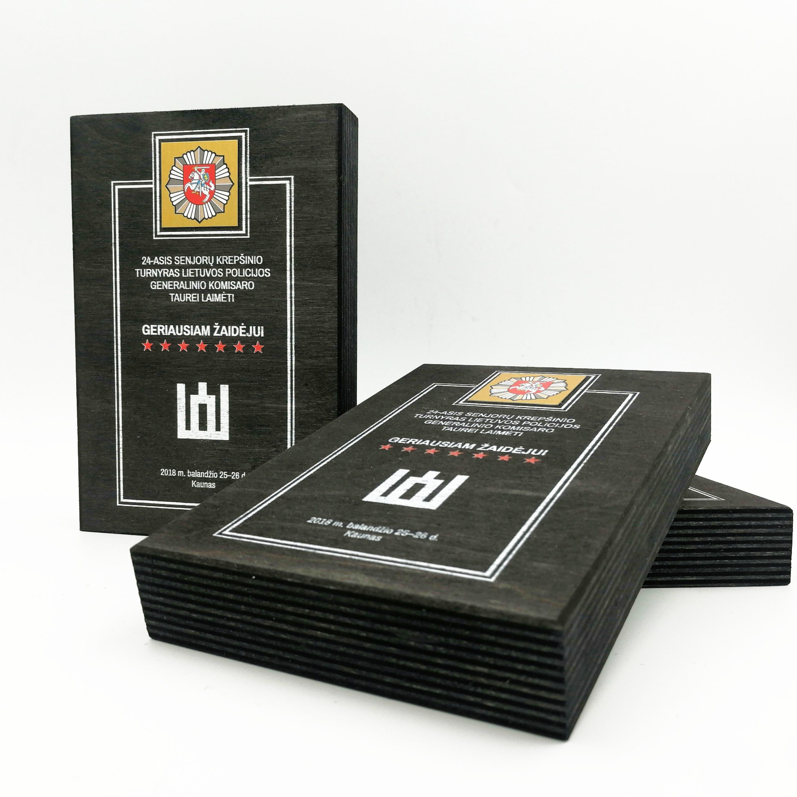 Pagrindinė kolekcijos idėja – pabrėžti Jūsų individualumą ir išskirtinumą natūraliose ir ilgaamžiškose medžiagose. Keturių dydžių mediniai apdovanojimai kombinuoti su metaline plokštele ir UV spausdinimu. Plokštelės gali būti aukso, sidabro ar bronzos spalvų.