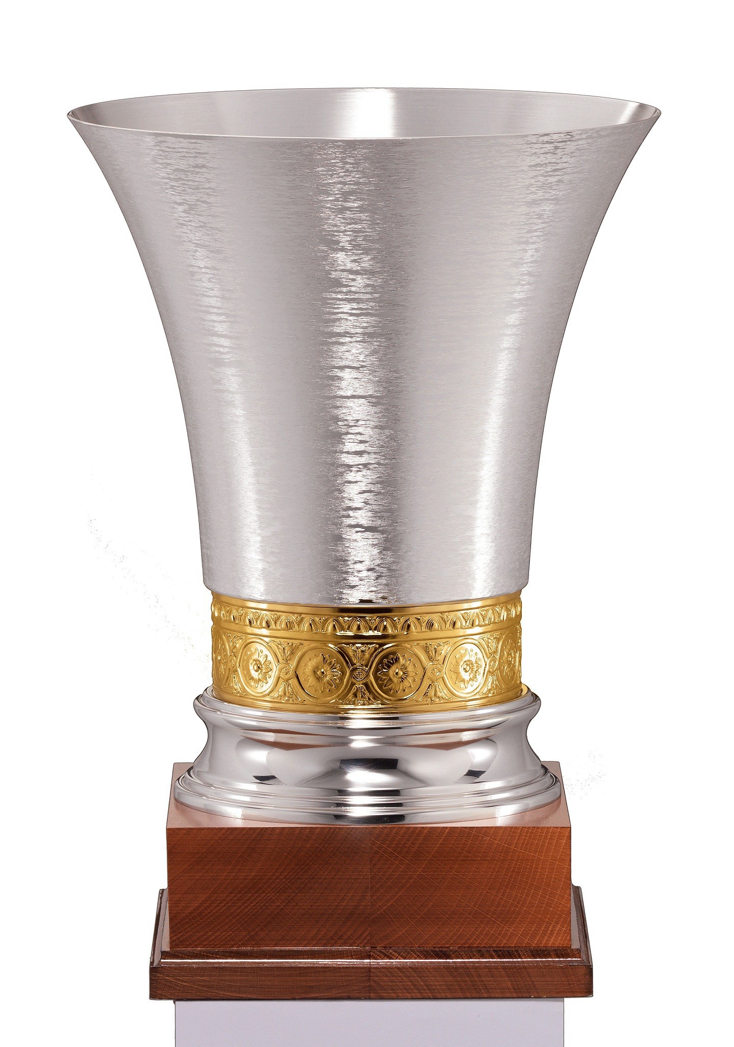 * Unikalaus dizaino taurė pagaminta iš metalo, padengta sidabru, turi sertifikatą. Taurės pagrindas pagamintas iš itin aukštos kokybės medžio.